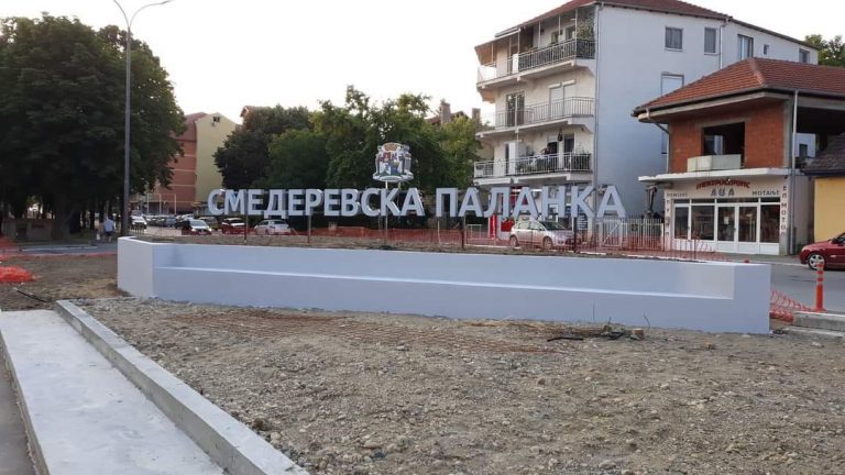 Radovi na pešačkom ostrvu kod bolnice, na ulasku u Smederevsku Palanku iz…